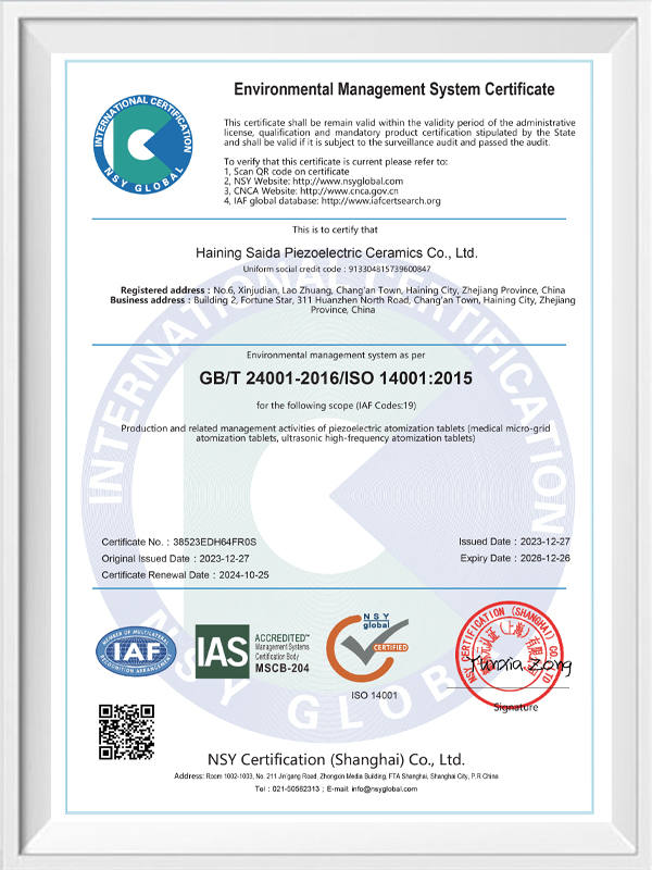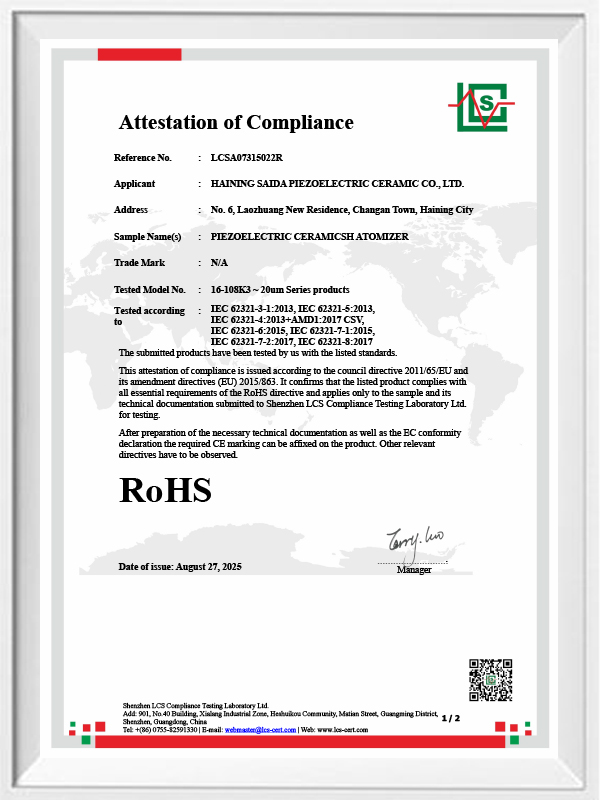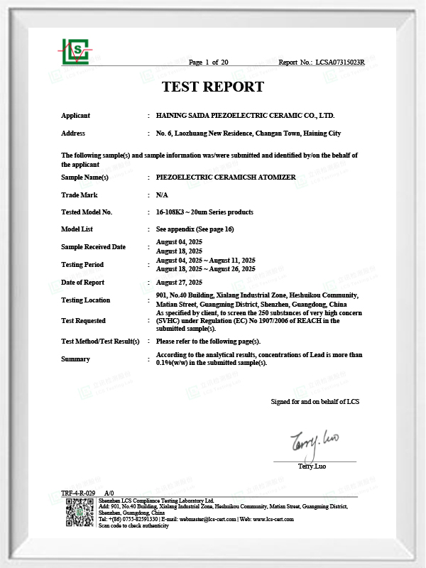সীসা-মুক্ত পাইজোইলেকট্রিক সিরামিকগুলি পাইজোইলেকট্রিক শিল্প "মুক্তা" হিসাবে পরিচিত, ভবিষ্যত ধীরে ধীরে সমস্ত দিকগুলিতে সীসা-ভিত্তিক পাইজোইলেকট্রিক সিরামিকগুলিকে প্রতিস্থাপন করবে, যার ইতিমধ্যেই একই পাইজোইলেকট্রিক কর্মক্ষমতা এবং সীসা-ভিত্তিক পাইজোইলেকট্রিক শীট রয়েছে। এটি সম্পূর্ণরূপে অ-বিষাক্ত, নিরীহ, নিরাপদ এবং পরিবেশগতভাবে বন্ধুত্বপূর্ণ, এতে সীসা, অ্যান্টিমনি এবং অন্যান্য ভারী ধাতু এবং অন্যান্য রোহস-সীমাবদ্ধ উপাদান নেই, উচ্চ কিউরি তাপমাত্রা Tc-328 ° C, খুব কম বৈদ্যুতিক ক্ষতি TangentLoss অতএব, সীসা-মুক্ত পাইজোইলেকট্রিক মেডিকেল অ্যাটোমাইজেশন চিপের দুর্দান্ত বাণিজ্যিক মূল্য এবং সর্বজনীন মূল্য রয়েছে, সত্যিকারের অ-বিষাক্ত এবং পরিবেশগতভাবে বন্ধুত্বপূর্ণ, সীসা-মুক্ত পাইজোইলেকট্রিক সিরামিক ছাড়াও দূষণকারী নয়, সীসা-ভিত্তিক সিরামিকের সাথে সামঞ্জস্যপূর্ণ পাইজোইলেকট্রিক কর্মক্ষমতা, একটি জনপ্রিয় পরিবেশ বান্ধব পাইজোইলেকট্রিক সিরামিক হয়ে উঠবে। বছরের পর বছর গবেষণা এবং উন্নয়নের পর, ক্রমাগত পরীক্ষা এবং পরীক্ষা-নিরীক্ষার পর, কোম্পানিটি সীসা-ভিত্তিক পরমাণুকরণ চিপের মতো একই পরিমাণ পরমাণুকরণ এবং একই ব্যাসের কণার প্রয়োজনীয়তা অর্জনের জন্য সীসা-মুক্ত মেডিকেল অ্যাটোমাইজেশন চিপ তৈরি করতে সফল হয়েছে। সীসা-মুক্ত মেডিকেল মেশ নেবুলাইজার চিপ, অবশ্যই চকচকে হবে এবং বিস্তৃত পরিসরের ব্যবহারের পরিস্থিতি পাবে।